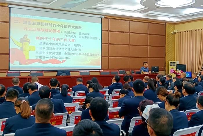 王秀江从党的二十大的主题,过去5年的工作和新时代10年的伟大变革,马克思主义中国化时代化,中国式现代化,全面建设社会主义现代化国家的部署,坚持党的全面领导和全面从严治党等方面对党的二十大精神进行了系统宣讲和阐释。