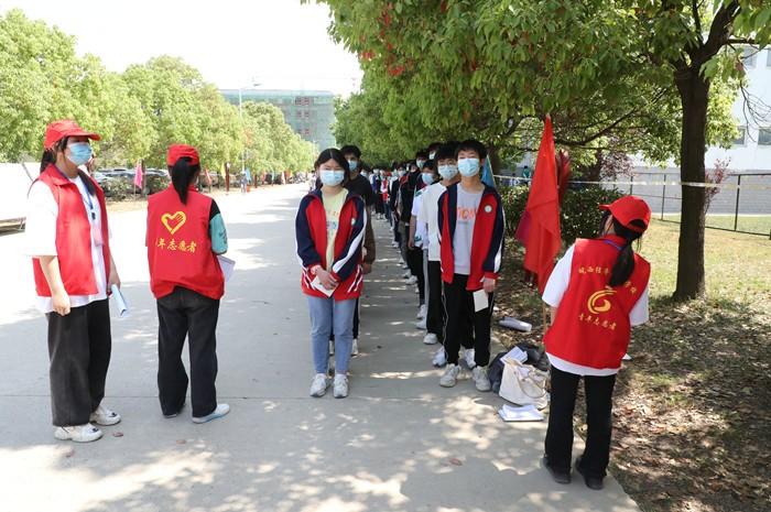 环环相扣,无缝对接。组考对考试实施流程进一步强化,考点学校组织60名学生自愿者参与考试各个环节的衔接工作。参考学校根据日程安排将考生安全带至考点,提交体温检测表后,按疫情防控要求有序进入考点;参考学校领队人员按照登分表顺序组织考生有序排队,纪检人员及考务工作人员查验考生准考证;引导员和志愿者将考生按组引导至抽签处,凭准考证抽签决定考场号及考试试题,并至候考室候考;考生由引导员引领至所抽考场进行现场考试;考试结束后,由引导员带至出口处,与考生所在学校带队教师交接,确保考试全程高效、有序。(王玉齐 吴阳阳 张玉强)