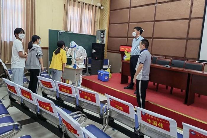 演练以一名学生向班主任请假,表示体温检测显示超过37.3℃,曾与新冠肺炎确诊者有过密切接触为背景,学校立即启动疫情防控应急处置预案。