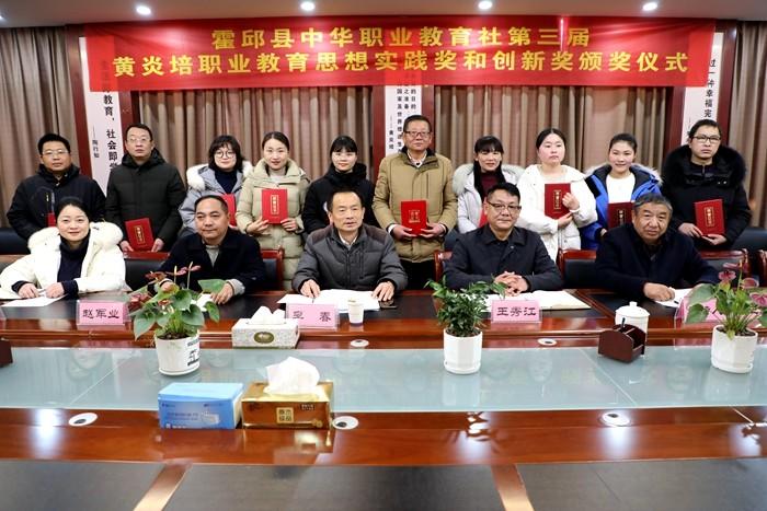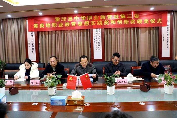 12月28日,霍邱县中华职业教育社第三届黄炎培职业教育思想实践奖创新奖颁奖仪式在皖西经济技术学校举行。县职教社常务副主任李春、县侨联副主席赵军业、皖西经济技术学校校长王秀江、社务委员徐芬等参加颁奖仪式。社务委员李正局主持仪式。