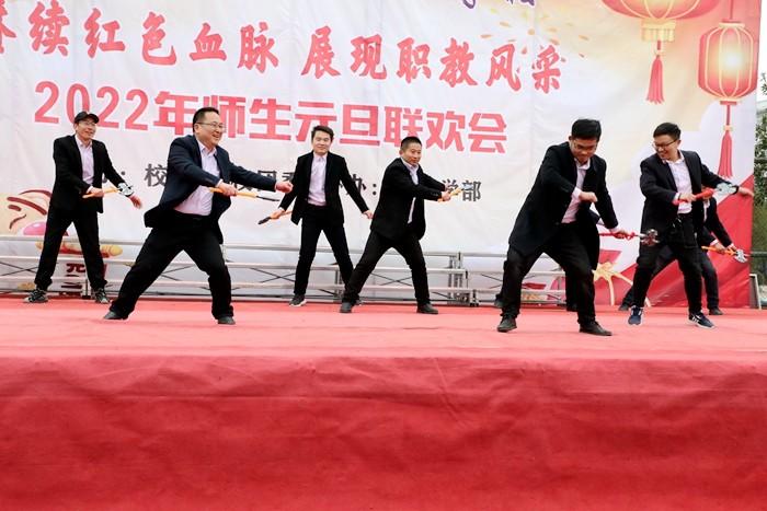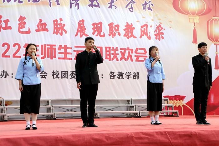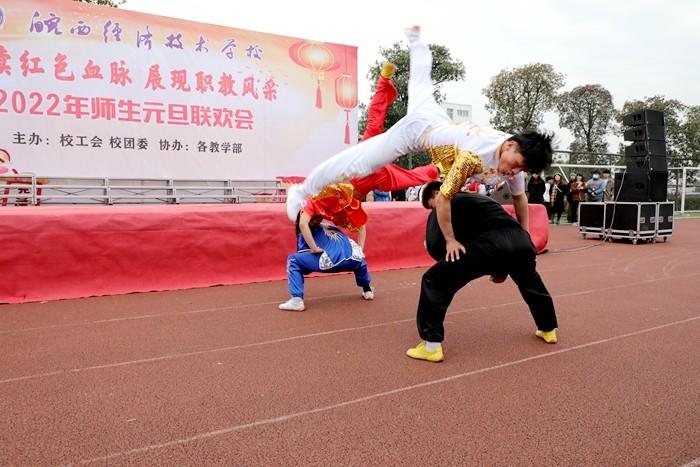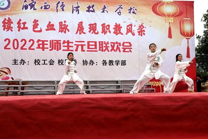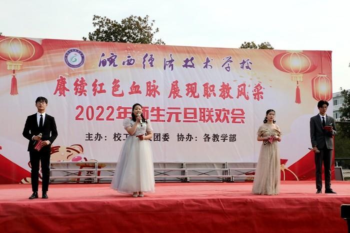 12月31日下午,皖西经济技术学校在校足球场隆重举行2022年“赓续红色血脉 展现职教风采”师生元旦联欢会。新店镇原政协主席涂红琴,岔路镇文化站站长、派驻共同村副点长唐兴杰应邀参加联欢会,皖西经济技术学校全体教职工和学生参加联欢会。