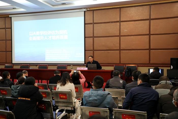 第二阶段,由合肥铁路工程学校正处级督导朱国苗主讲“迎评促建谋发展,提质培优创一流”,他带领大家仔细分析了安徽省A类普通中等专业学校评估指标体系,整个内容分“办学水平评估特点、评估主要内容任务、如何开展迎评创建”三部分,高度评价了学校“三步走”战略,鼓励大家对接安徽省A类普通中等专业学校评估指标,在学校党委领导下,积极备战,精心准备,一定能够创建安徽省一流学校,达成A类普通中等专业学校标准。