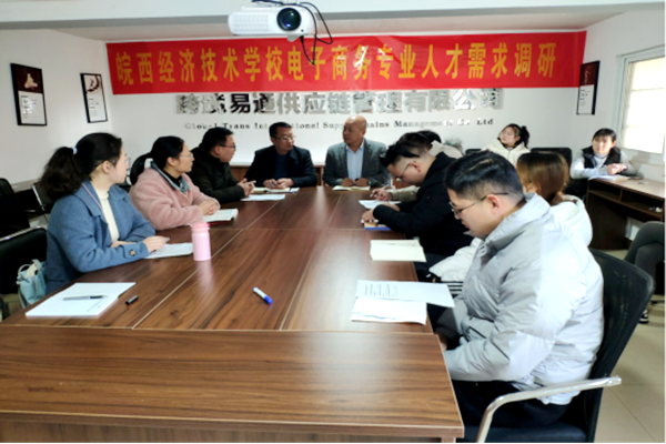 深圳跨境易通供应链管理有限公司以“深耕安徽、做通全国”为目标,以打造具有个性特色的综合性物流运营商为己任,经过十几年的发展,现已成为霍邱县具有较大影响力的物流企业。在公司陈总的带领下,农业经贸部5位电子商务相关专业教师先后参观了公司的办公环境,同时深入了解了公司的发展历史、现状和未来规划,随后双方就电子商务人才需求、人才培养模式、专业建设和校企合作等方面进行了广泛地探讨与交流。