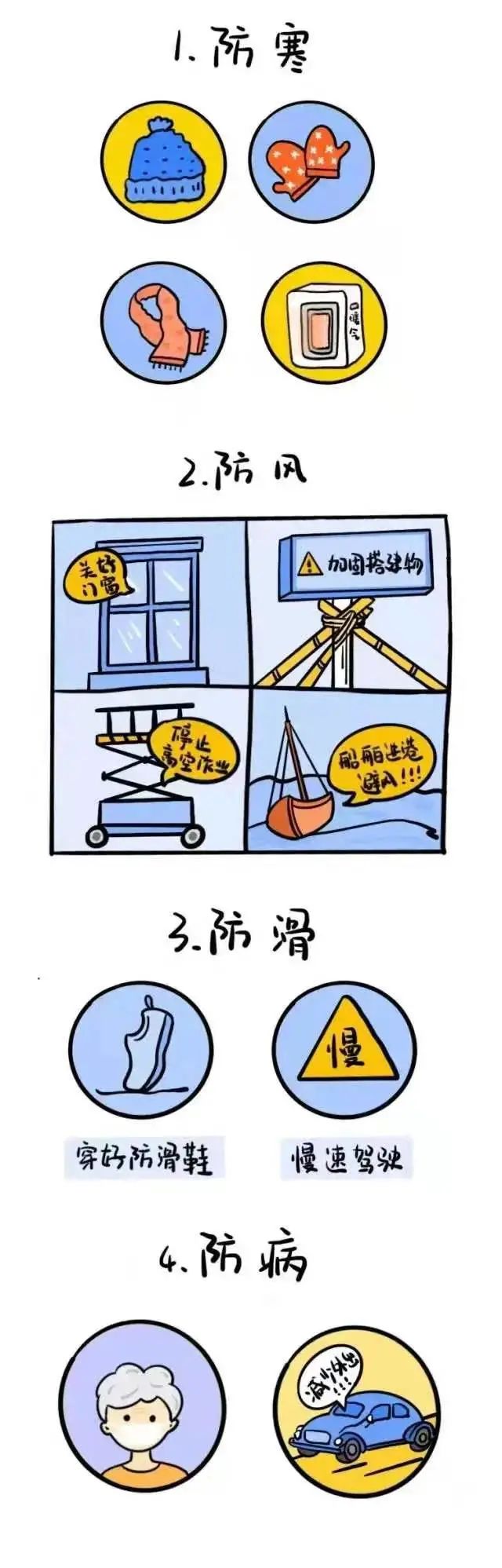 2、恶劣天气减少外出,注意居家安全。气温骤降,家人孩子尽量减少户外活动,及时增减衣物。 家长对孩子进行安全教育,辨识家庭中燃气、窗台、用电等安全风险。