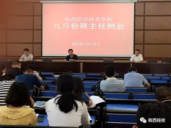9月3日下午,皖西经济技术学校在校第一会议室召开新学期班主任工作会议。会议由政教处副主任胡伟主持,副校长贾仁宝及全体班主任参加了会议。