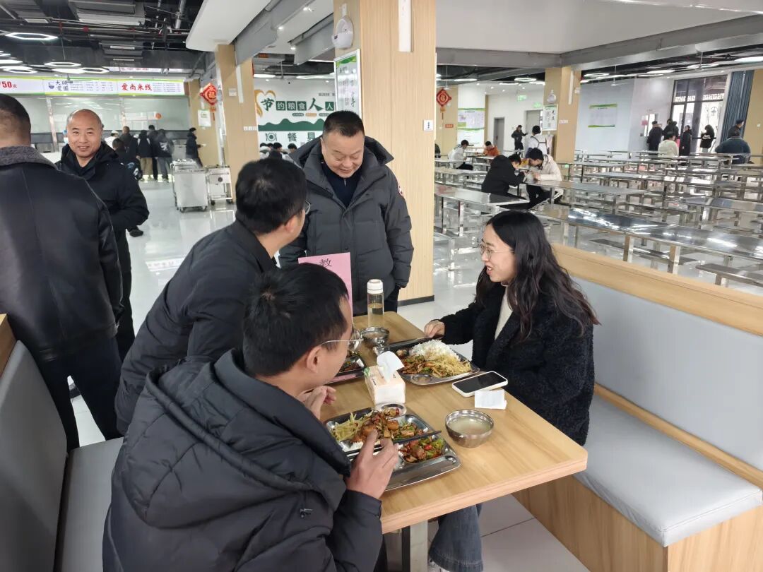 王学宏一行直奔学生生活核心区域,重点深入学生食堂与寝室开展实地督导。 在食堂,王学宏与就餐师生亲切交流,详细询问菜品质量、饭菜口味、价格收费、就餐环境、食品安全保障及后勤服务等情况,并认真听取食堂运营与食品安全管理汇报。他强调,食品安全是校园安全的底线,必须从严从细落实各项制度,确保师生吃得安全、吃得放心、吃得实惠,不断提升餐饮服务品质与师生满意度。在学生寝室,他仔细查看宿舍环境卫生、水电设施等相关情况,叮嘱管理人员严格落实宿舍安全规范,把寝室打造成安全、整洁、温馨的学生之家。