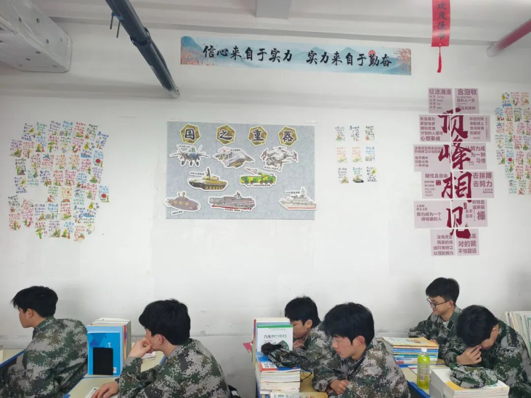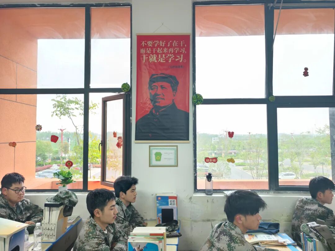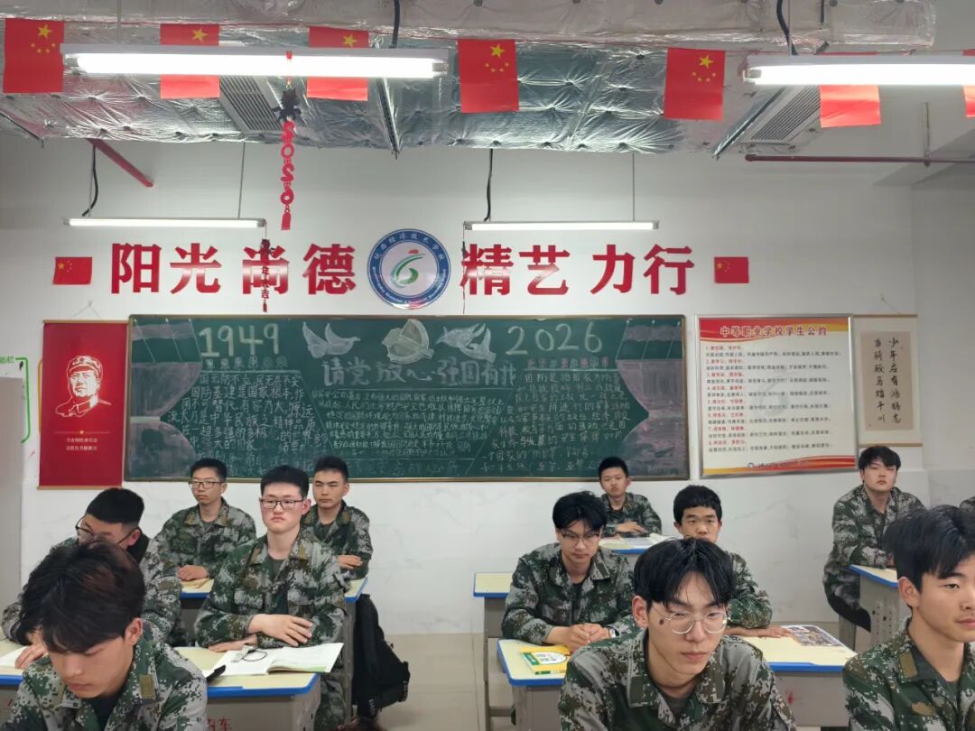 走进该部的教室,浓厚的文化气息扑面而来。一面面精心设计的文化墙,将社会主义核心价值观、爱国主义教育、工匠精神与汽车专业特色深度融合:有的教室以“国防教育”为主题,用黑板报传递劳动荣光与家国担当;有的教室以“国之重器”为核心,用国防装备贴纸激发学生强军报国之志;有的教室以“你把时间花在哪里,人生的花就开在哪里”等励志标语,激励学生以奋斗之姿逐梦青春。一排排整齐的国旗、党旗装饰,让红色基因融入日常;一张张“全力以赴、未来可期”的励志标语,让拼搏精神浸润心田;一幅幅“先进班集体”荣誉锦旗,彰显着班级向上向善的精神风貌。从窗明几净的学习环境,到主题鲜明的文化布置,从规范有序的物品摆放,到积极昂扬的班级风貌,每一处细节都彰显着“以文化人、以美育人”的育人理念,既凸显了专业的行业特色,又传递了职业教育的育人温度。